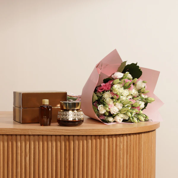 The Face Shop Set of Your Choice paired with a Flowers Bouquet of Your Choice creates a personalized and thoughtful gift. The skincare products cater to individual preferences, while the flowers add a touch of beauty and sincerity. This combination celebrates uniqueness and care, leaving a lasting impact on the recipient.