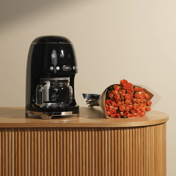 All prices include taxSmeg 50's Style Drip Filter Black Coffee Machine | Flowers Bouquet