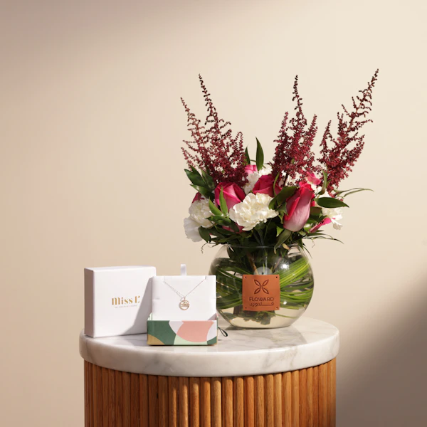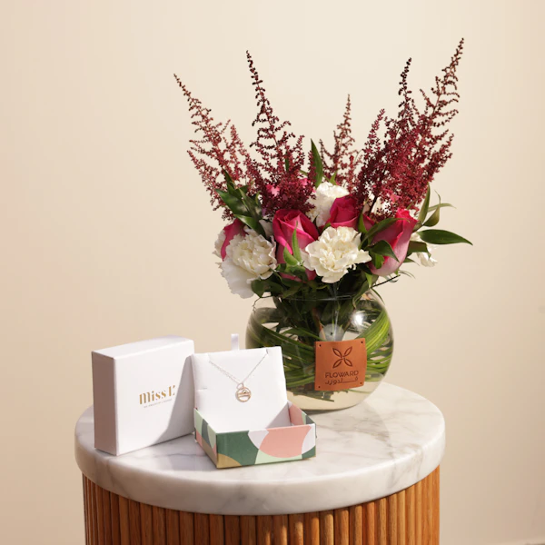 Elevate her special day with the Miss L by L'azurde Zodiac Necklace, a stunning luxury gift that perfectly reflects her unique style. This elegant necklace, featuring her zodiac sign, is beautifully paired with a vase of her favorite flowers. Whether for a birthday, anniversary or just because, this thoughtful set adds a personal touch to any occasion. Order luxury gifts online for a seamless shopping experience and ensure your gift arrives beautifully presented. Make her feel cherished and adored with this exquisite choice.