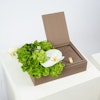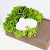 Arrangement of white calla, white orchid and green hydrangea with Qur'an