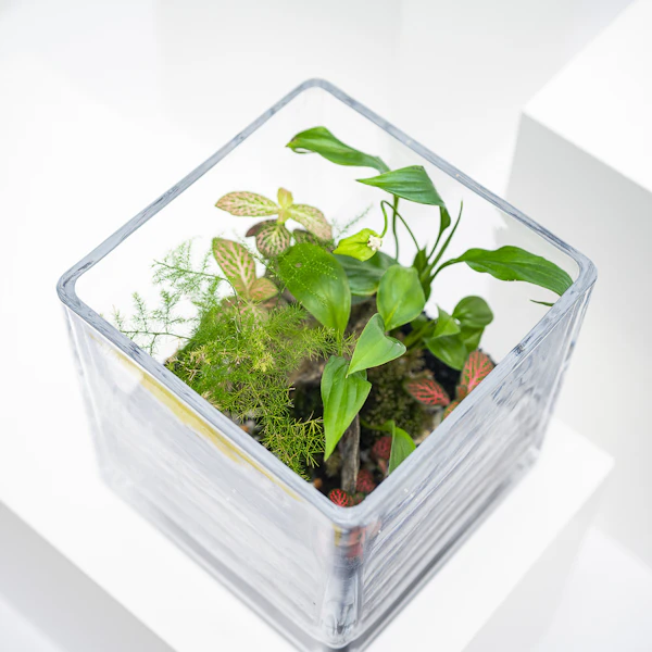 - Keep the terrarium in room temperature, exposing it to LED lighting or light windows while avoiding direct sunlight.