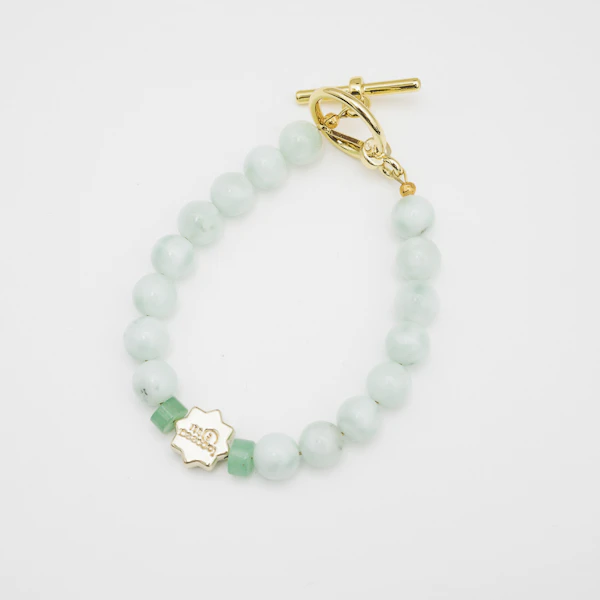 • Tasneem Eshki Grace bracelet was designed with 11 pieces of aquamarine & aventurine. This gift also comes with a fragrance by Tasneem Eshki.