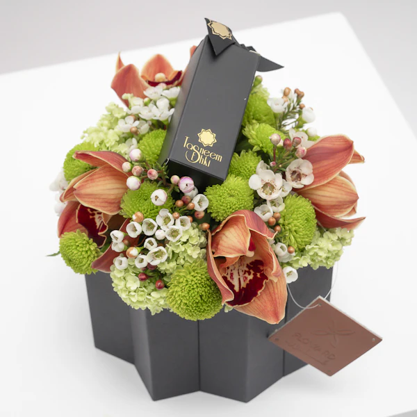 The Tasneem Eshki Grace Bracelet and Fragrance is a stunning accessory that combines elegance and a delightful scent. Adorned with a bouquet of Orange Cymbidium and Green Chrysanthemums, this bracelet not only adds a touch of beauty to your ensemble but also carries a captivating fragrance. The vibrant and refreshing blend of these floral notes enhances your aura with a burst of orange and green hues, making it a graceful and fragrant addition to your jewelry collection.