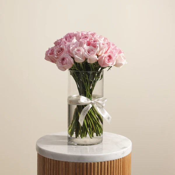 Enhance any space with our stunning Pink Roses in a Cylinder Glass Vase. This delicate roses gift is perfect for expressing love and appreciation. The elegant arrangement of pink roses adds a touch of sophistication to any setting, making it an ideal choice for birthdays, anniversaries, or just because. With their vibrant color and soft petals, these roses are sure to bring joy and elegance. Don’t miss out on this beautiful gift; buy now to surprise your loved one with the finest pink roses in a vase. Order today and let the delicate charm of these roses create unforgettable memories.