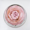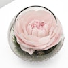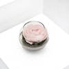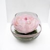 - A glass bowl vase that's arranged with a preserved pink peony.