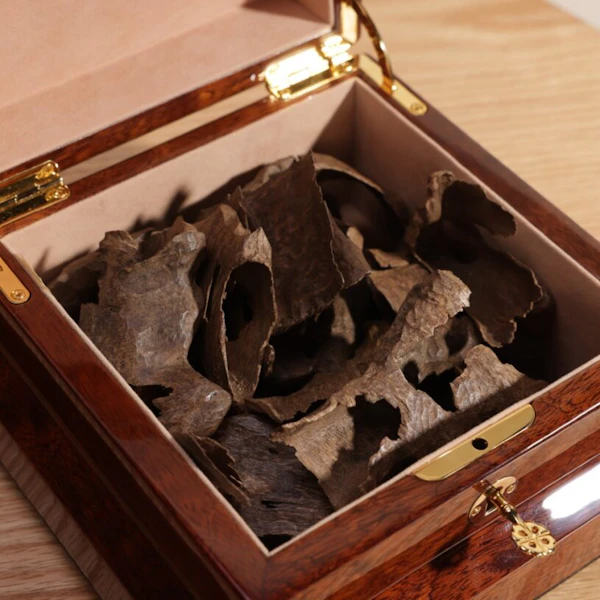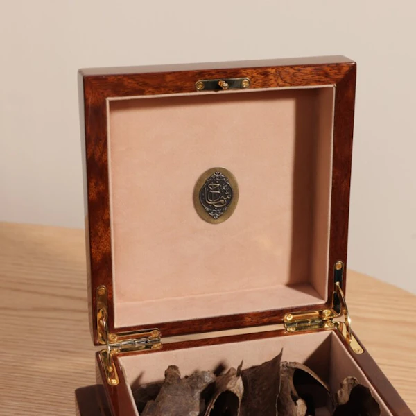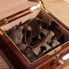 Be unique with your gift and present your loved ones with Saad Bashammakh's Oud Burma bakhoor in a handmade wooden gift box in a rich brown hue, adorned with luxurious gold details and a refined lock, exuding an aura of opulence and sophistication. Lined with plush beige velvet. Inside, discover 125g of Saad Bashammakh's Oud Burma Bakhoor, a fragrant delight that will enchant the senses and elevate any space, making it the perfect addition to any special occasion or event.