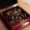 SAR8970Flawlessly crafted from wood, this exquisite gift box boasts a rich burgundy hue and is lined with sumptuous black velvet. Its opulent gold accents add a touch of sophistication and allure, while the elegant lock enhances its luxurious appeal. Whether for a special occasion or everyday elegance, this box exudes timeless class and charm, elevating any event or space with its impeccable craftsmanship and elegant design.