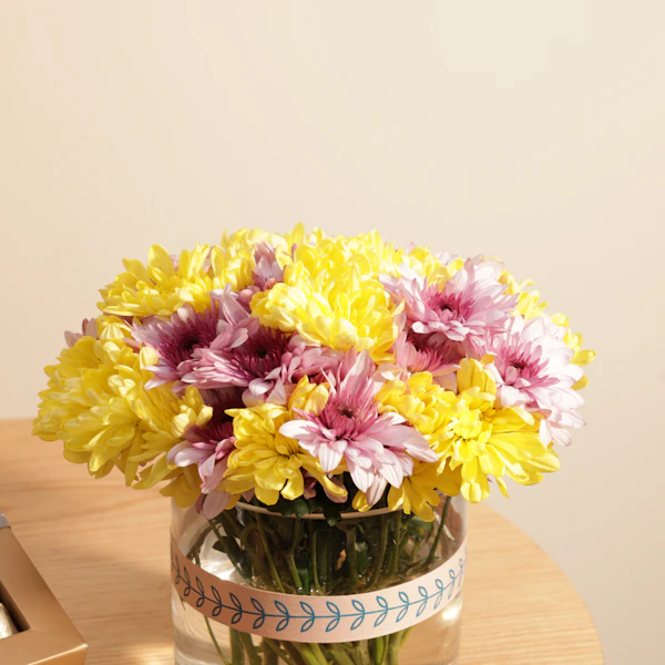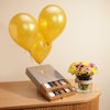 Indulge in the ultimate gift experience with Levo's Wrapped Chocolate Box, paired with a flower vase of your loved ones' favorite flowers and three balloons in their favorite colors. This elegant set combines decadent chocolates with a beautifully selected floral arrangement and festive balloons, making it perfect for any celebration or special occasion. Delight your loved ones with this thoughtful, personalized gift that blends luxury, beauty, and joy in one charming package.