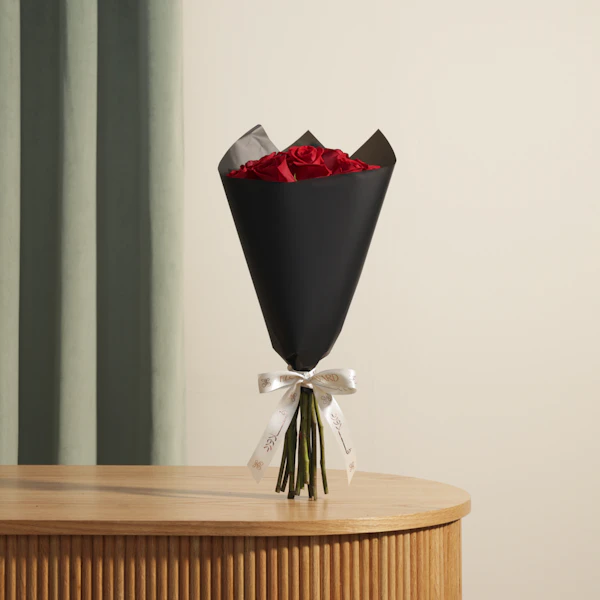 SAR9Surprise someone special with this exquisite red rose bouquet, elegantly arranged in a sophisticated black wrap. These luxury flowers are perfect for boldly expressing love and admiration. The deep red roses and the striking black wrap create a stunning visual that speaks volumes. Whether you’re celebrating a memorable occasion or just want to show affection, this bouquet will leave a lasting impression. Don’t wait to elevate your gifting with these luxury flowers and buy now to make your loved one’s day truly special.