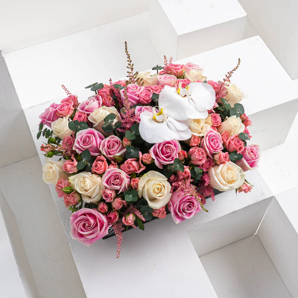 SAR39.653999999999996This arrangement contains Roses, Baby Roses and Orchid.